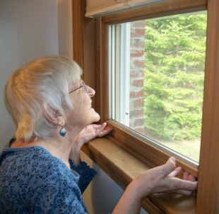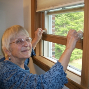 My Mother is now opening the same double pane up and down window by using two 3 inch length extension Ergoglides®. |