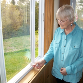 My Mother finds the 3 inch length extension Ergoglide® very helpful as she opens this porch double pane window. |